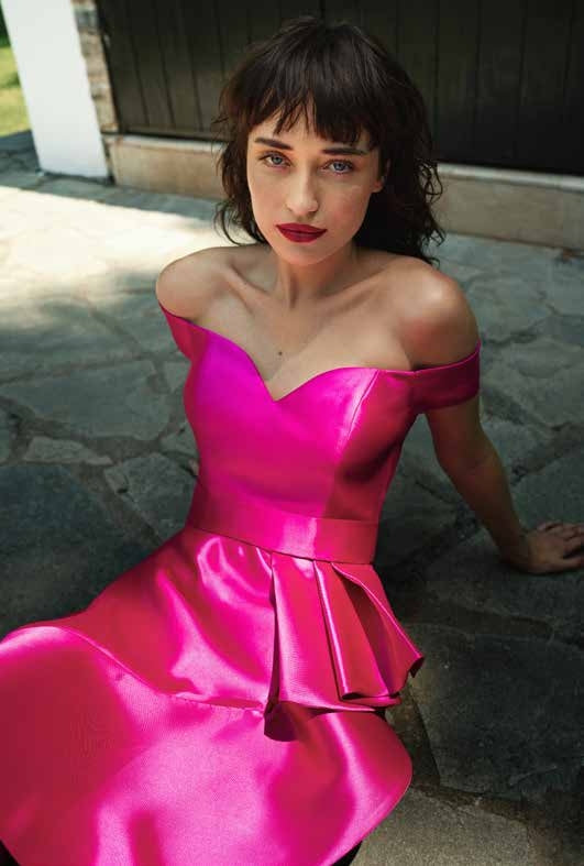 ABITO CON SCOLLATURA OMERALE, VOLANT ASIMMETRICO SULLA VITA E SULL'ORLO, IN STILE SIRENA. ABITO IN TESSUTO DI MIKADO