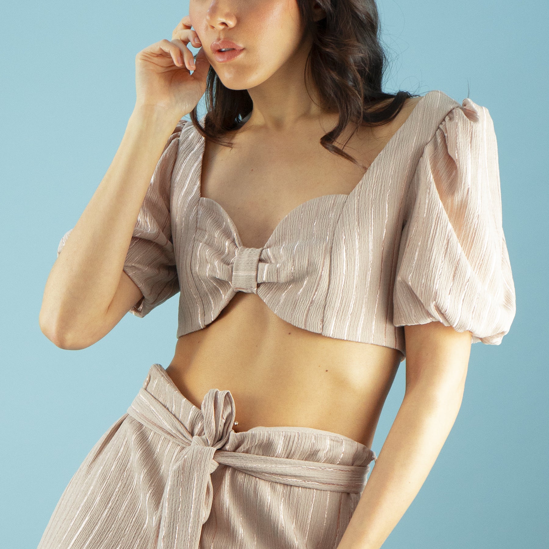 Top con maxi fiocco in tessuto rigato - LA KORE