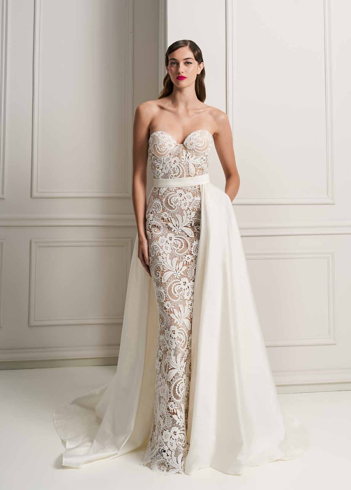 ABITO LUNGO A SIRENA IN PIZZO, CON CINTURINO E GONNELLONE. ABITO SCOLLATURA A CUORE