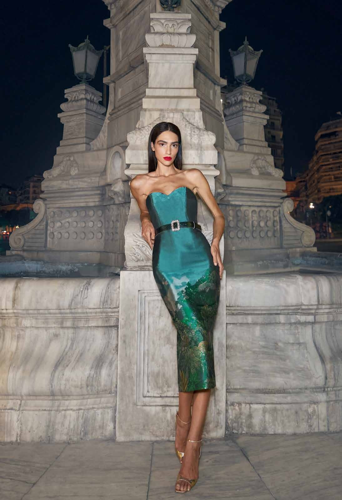 ABITO MIDY IN MIKADO CON FANTASIA, SCOLLATURA A CUORE E CINTURINO IN VITA CON CHIUSURA GIOIELLO
