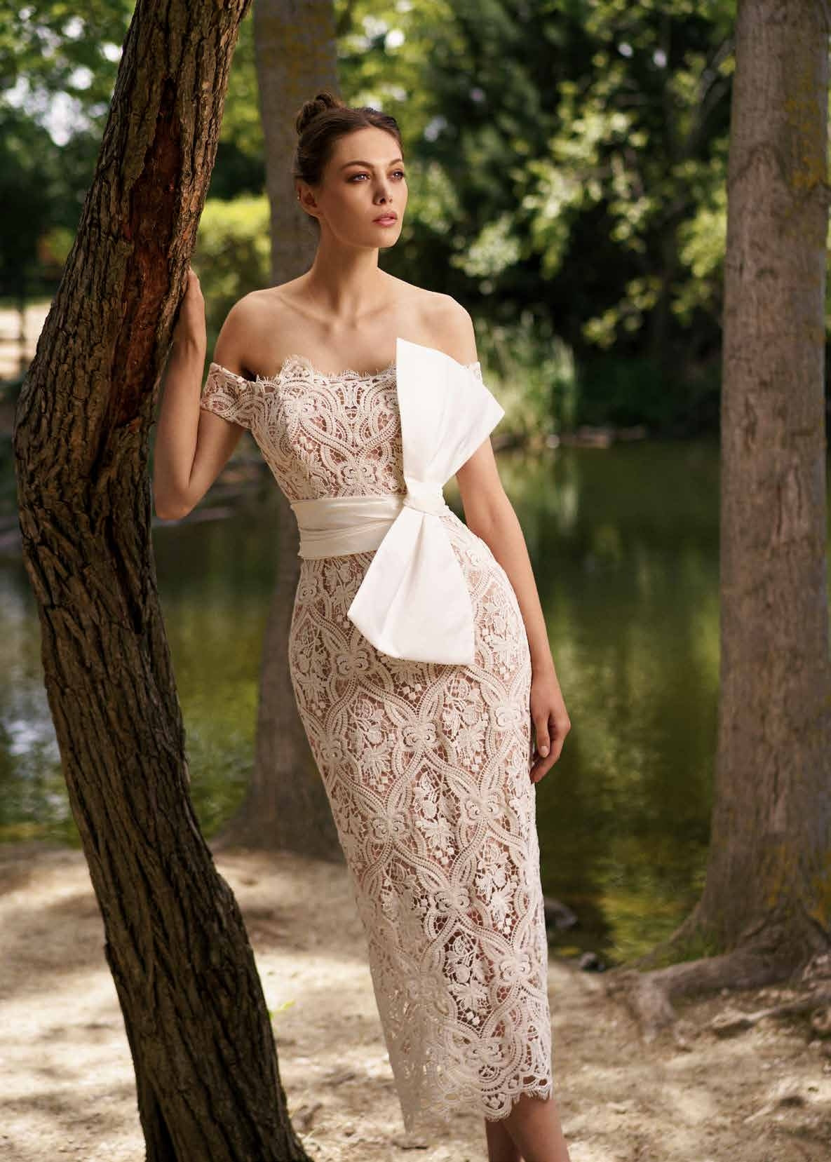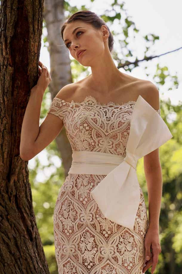ABITO MIDY IN PIZZO , SCOLLATURA OMERALE, CINTURONE CON FIOCCO IN VITA