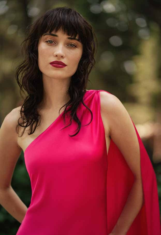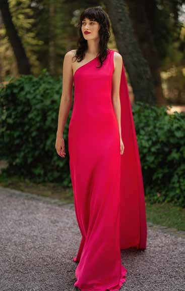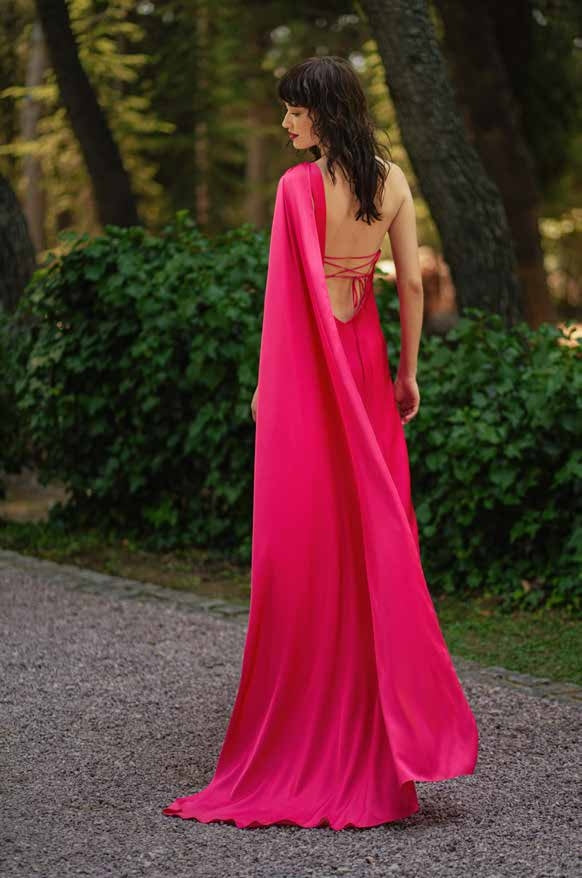 ABITO LUNGO IN CHIFFON, MONOSPALLA, TINTA UNITA, SCHIENA SCOPERTA