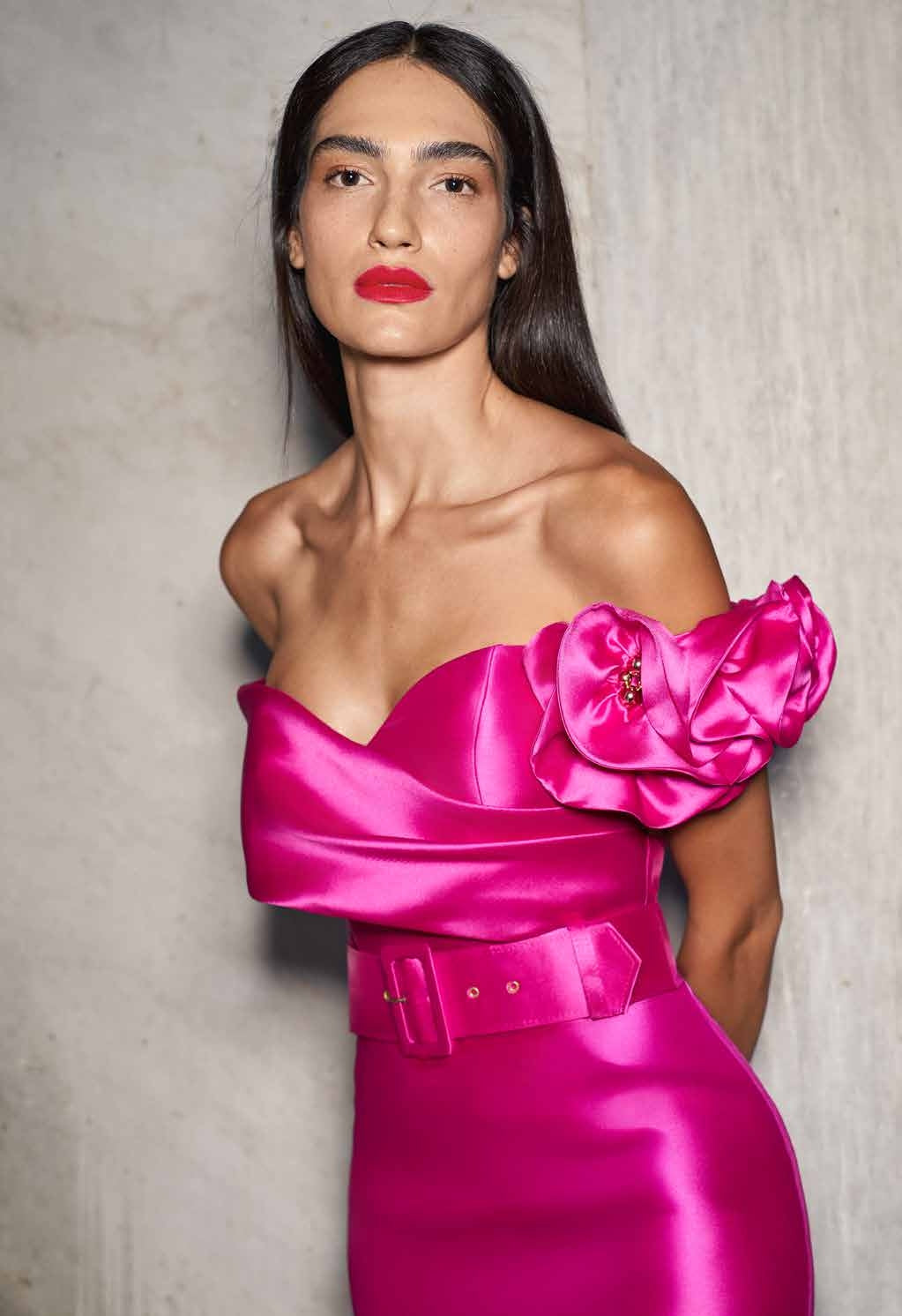 ABITO CORTO IN MIKADO, SCOLLATURA OMERALE CON APPLICAZIONI FLOREALI