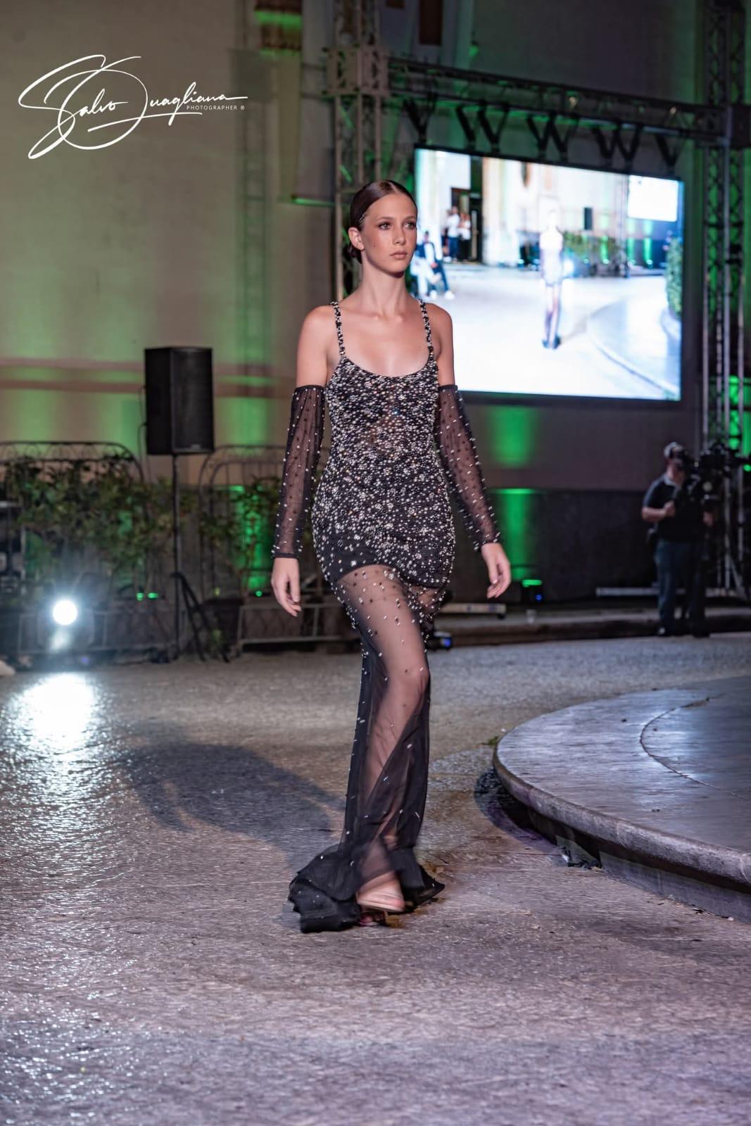 ABITO LUNGO IN TULLE RICAMATO DA  PIETRE, PERLINE E BRILLANTINI. BUSTIER CON BRETELLE CON SOTTANA A META' COME DA FOTO. SENZA MANICOTTI.