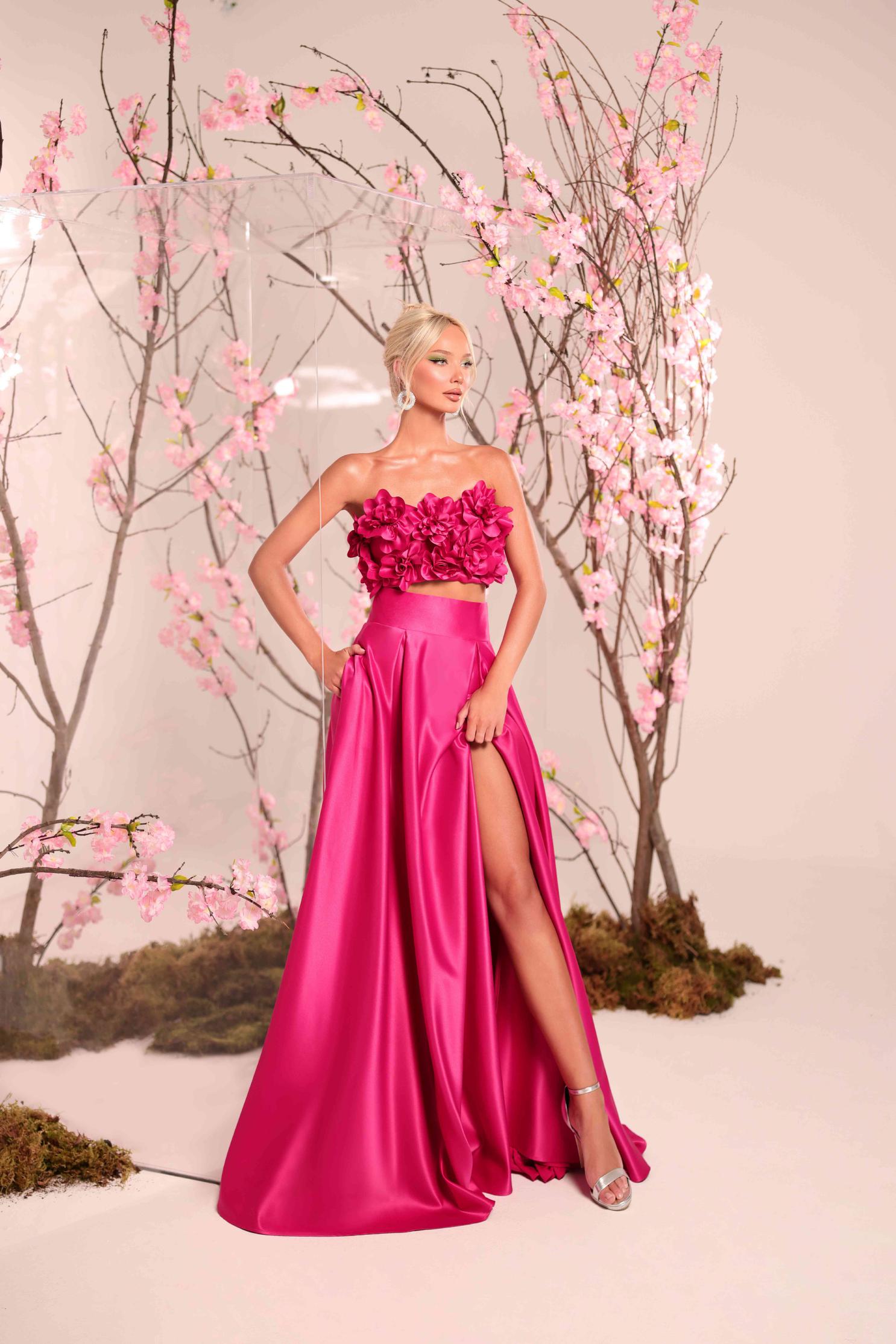 GONNELLONE A VITA ALTA CON FASCIONE IN VITA. TOP CON BRATELLINE SOTTILI ED HA DELLE APPLICAZIONI FLOREALI
