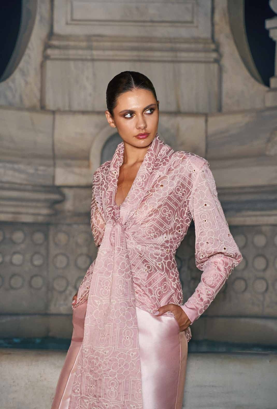 COMPLETO PANTALONE, PIZZO SANGALLO,PANTALONE SIGARETTA IN MIKADO