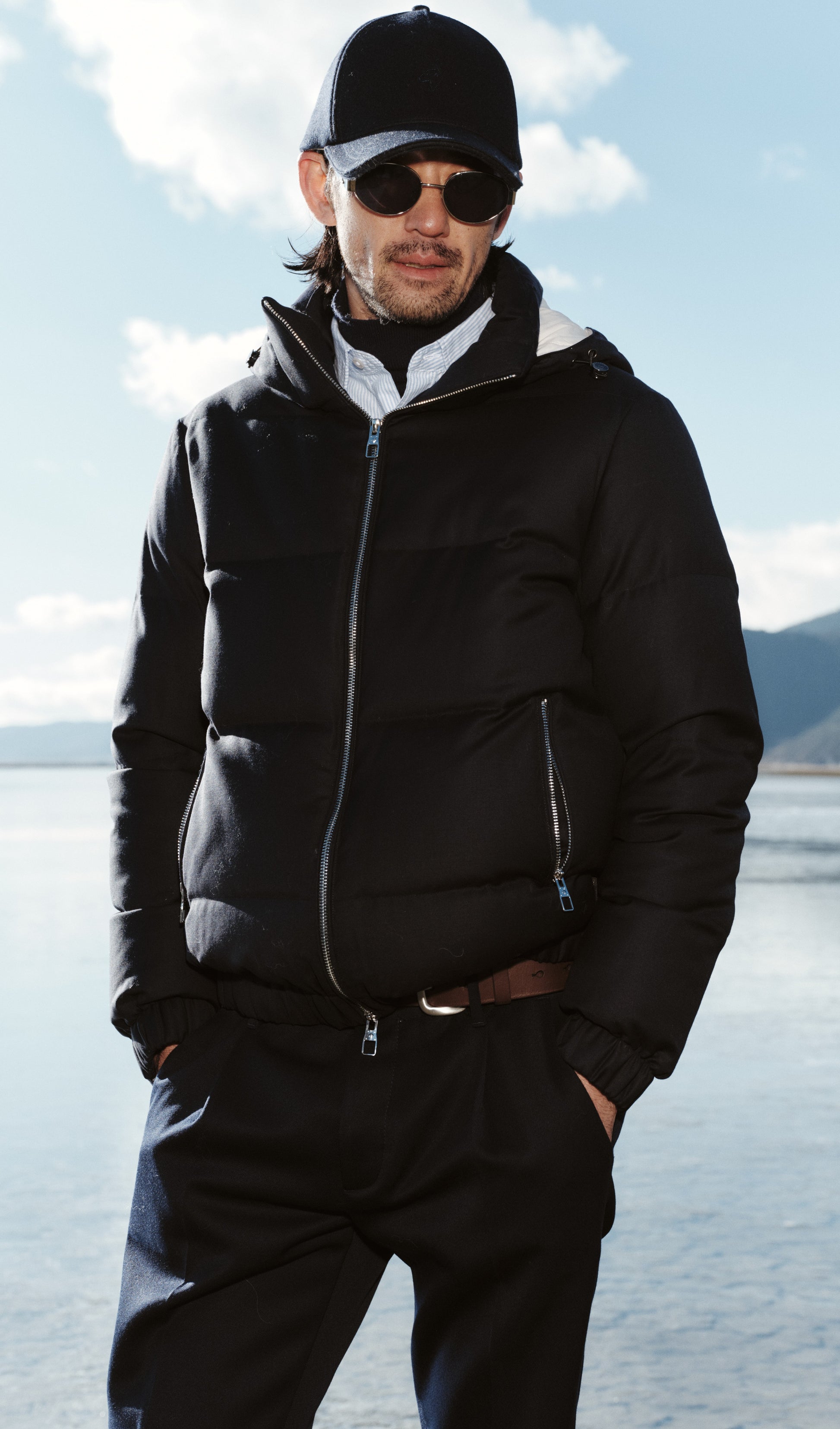 -PIUMINO CORTO CON CAPPUCCIO CON COULISSE ESTRAIBILE DAL FONDO INTERNO DI COLORE BIANCO
