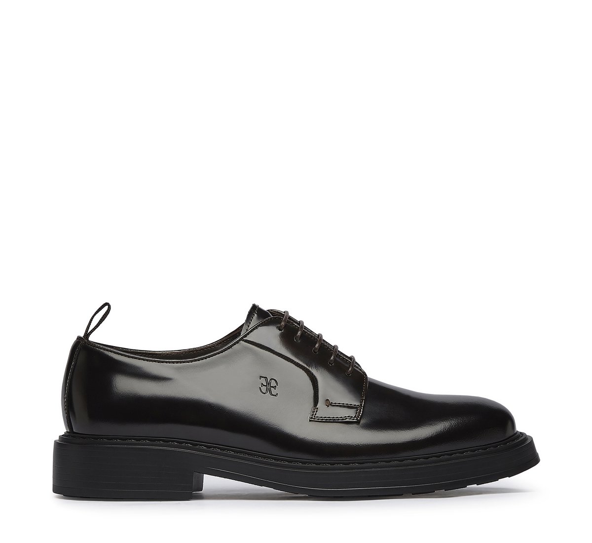 Questa derby Fabi è un classico senza tempo. Realizzata in pelle di vitello di alta qualità, presenta una finitura brillante che conferisce eleganza e raffinatezza. Il design include una chiusura a lacci con cinque occhielli, mentre il fondo leggermente rialzato garantisce durabilità e comfort durante tutto il giorno.