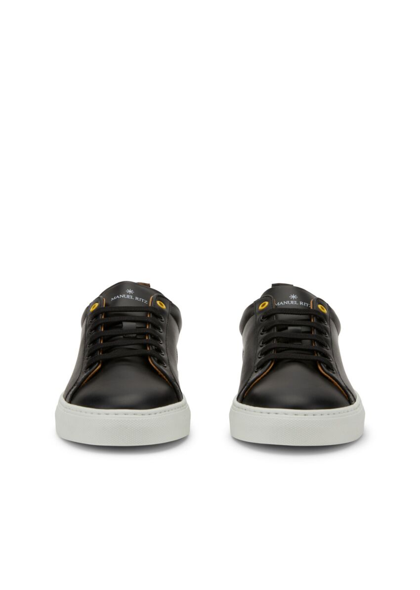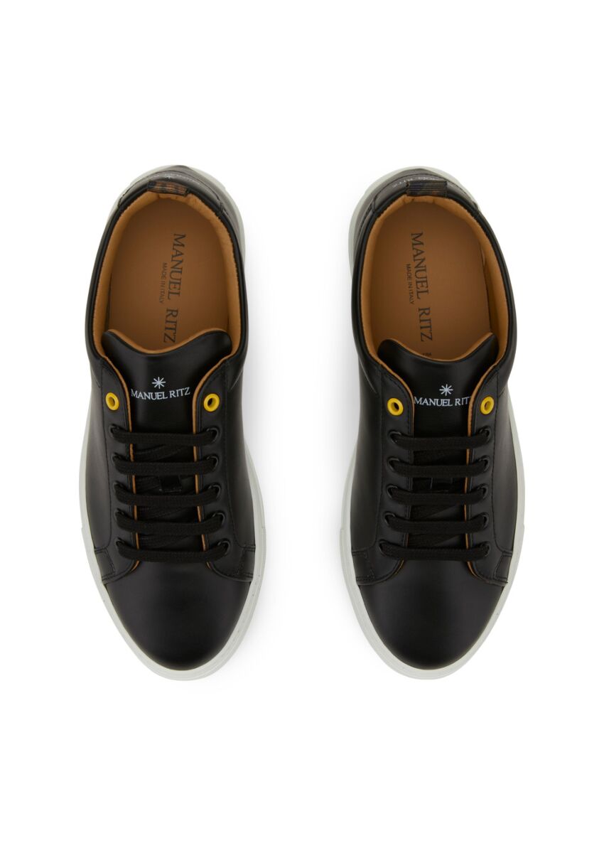 Sneaker in pelle, primo occhiello in contrasto, fondo cassetta bianco. Vera pelle