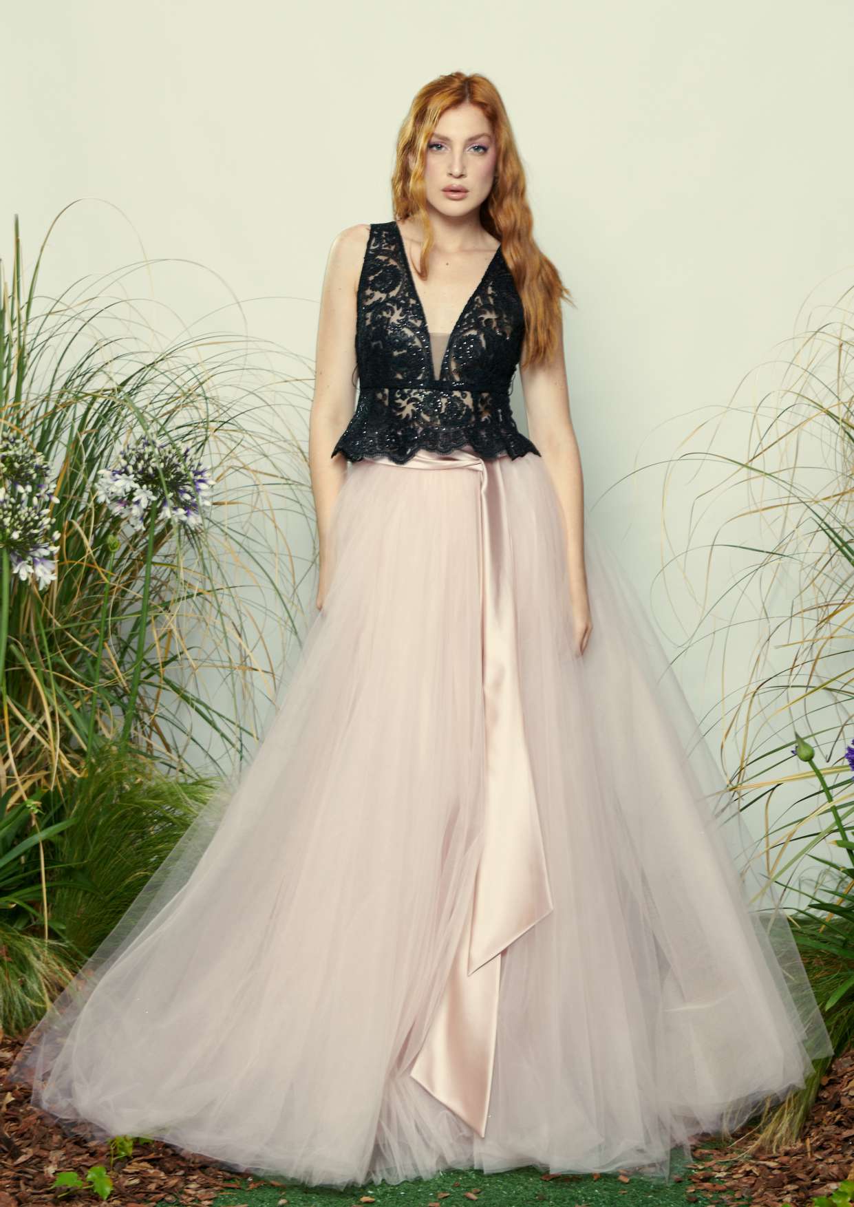 TOP IN PIZZO CON CINTURA PIU' GONNELLONE IN TULLE RIGIDO PIU' SHORT IN RASO STRETCH